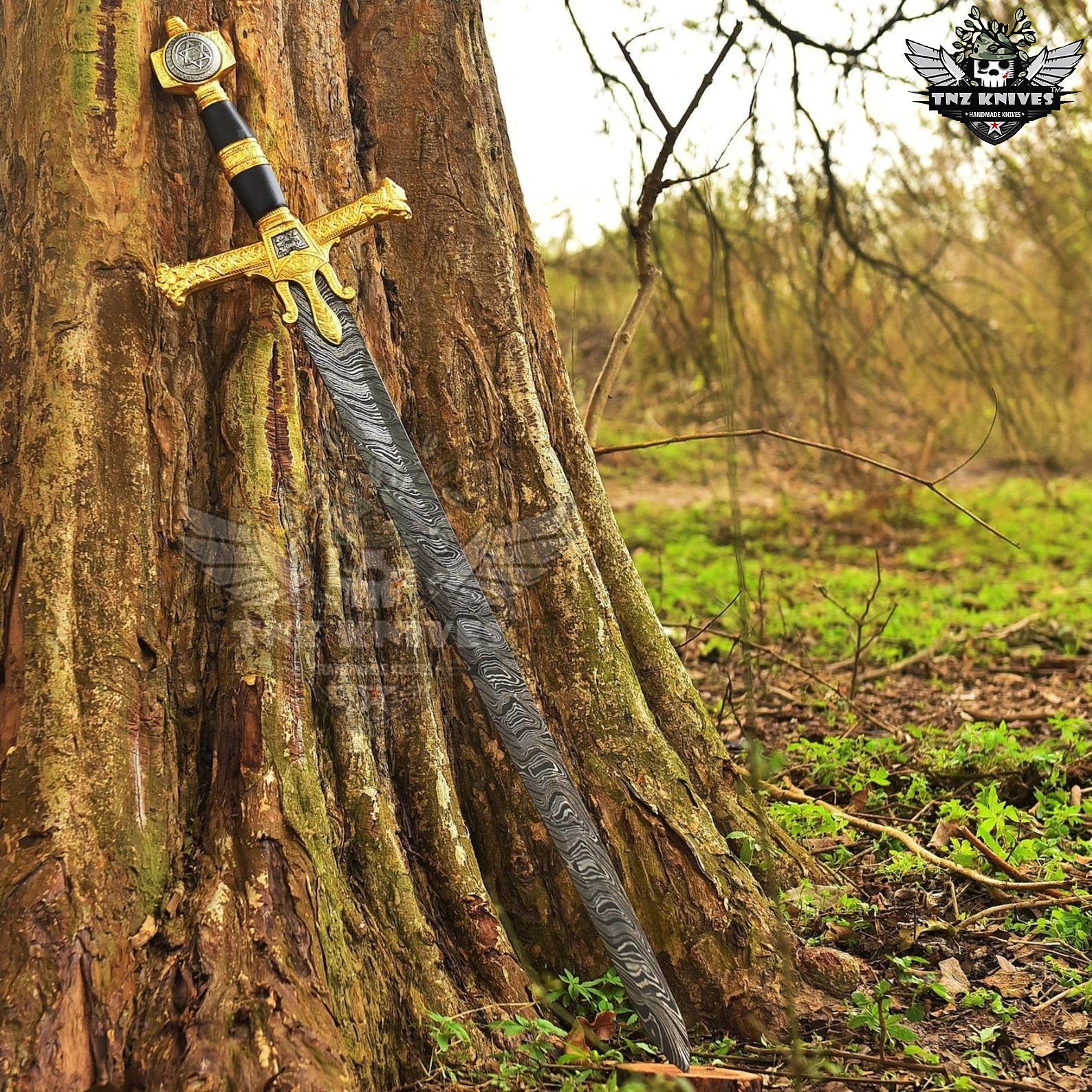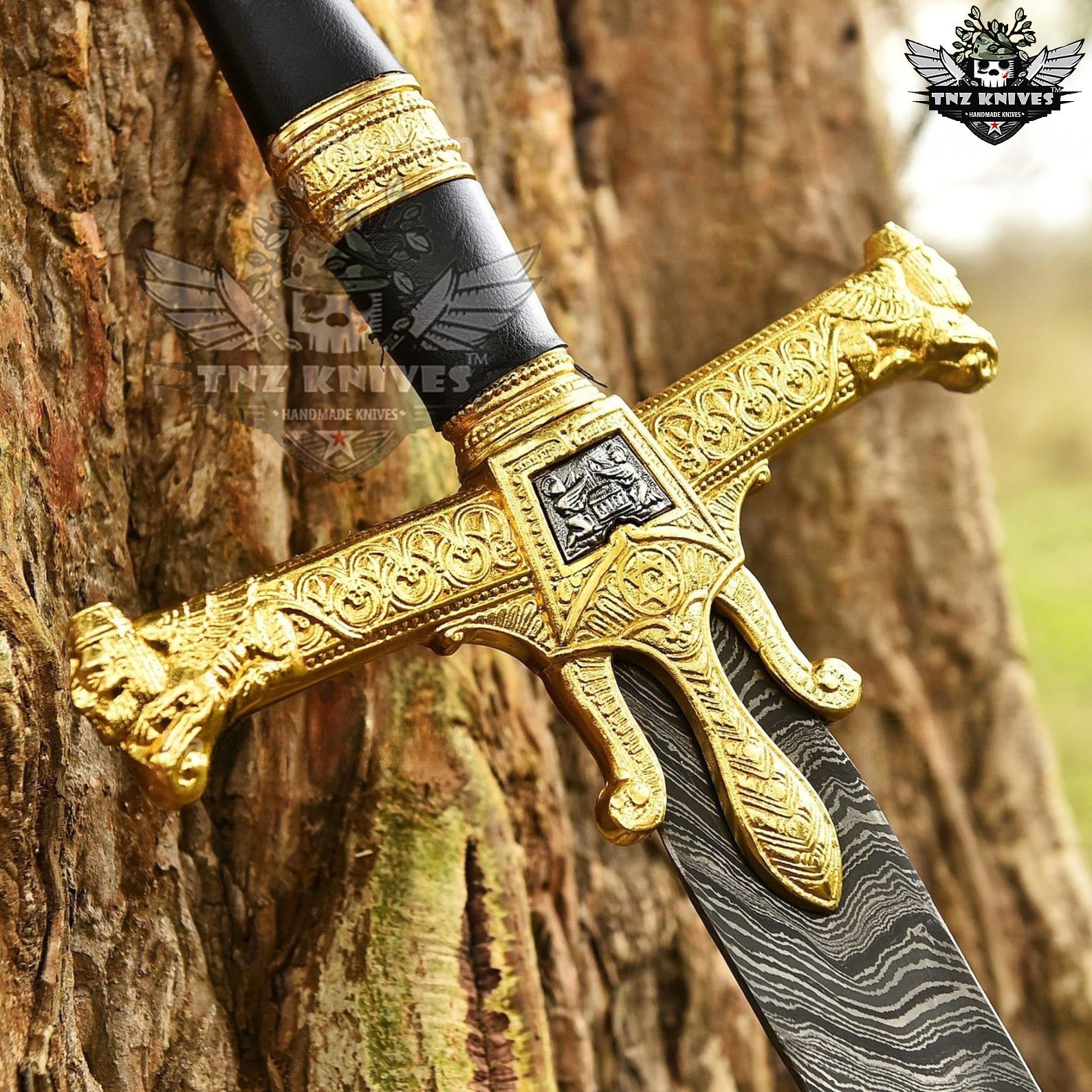 Experience timeless craftsmanship with this Handmade Damascus Steel King Solomon Medieval Sword, inspired by ancient royal heritage and historic artistry. Designed for collectors, history enthusiasts, and lovers of medieval décor, this masterpiece blends tradition, symbolism, and premium materials into one stunning display piece.
