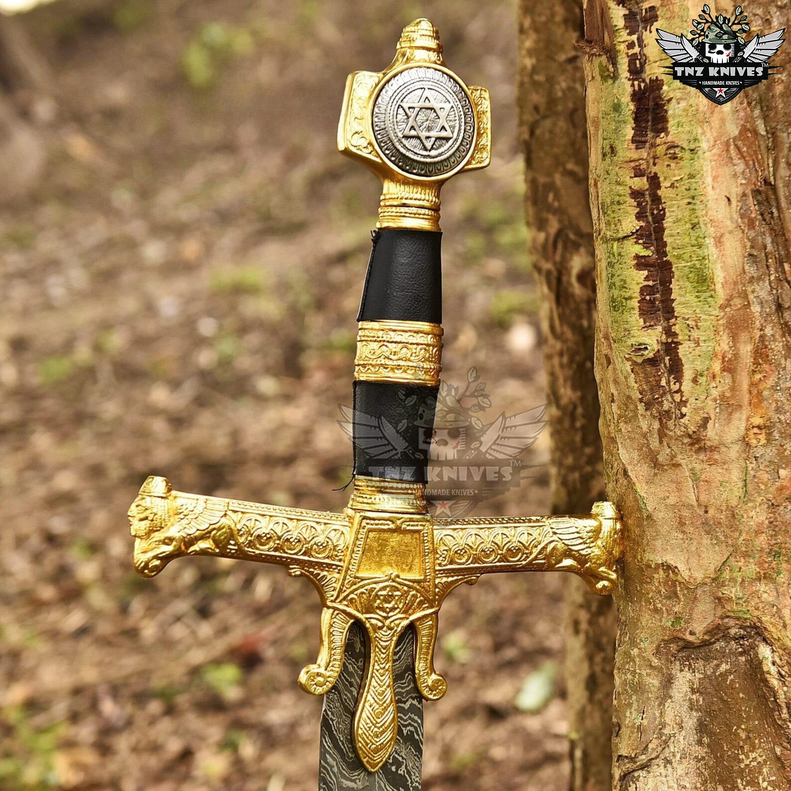 Handmade Damascus Steel King Solomon Medieval Sword – Star of David Pommel